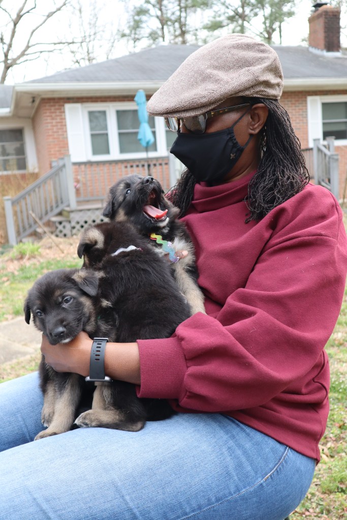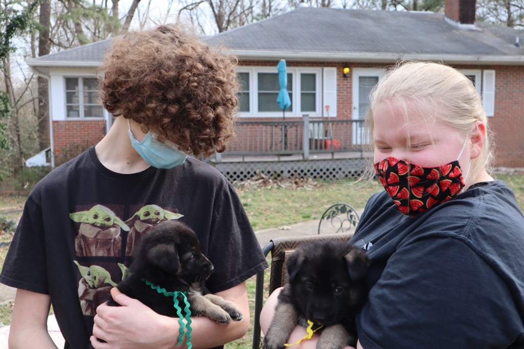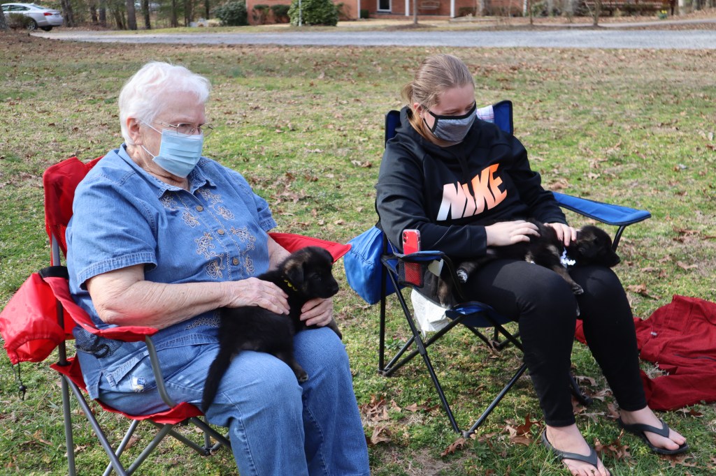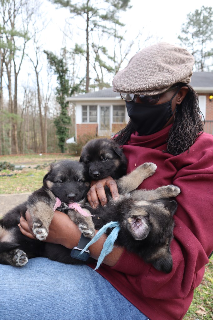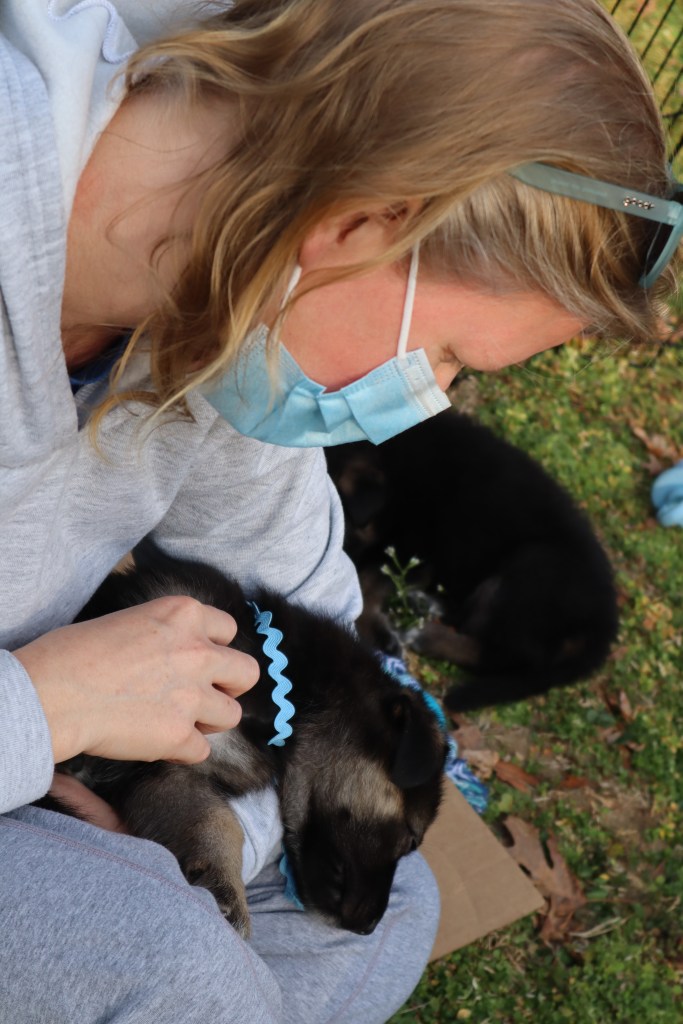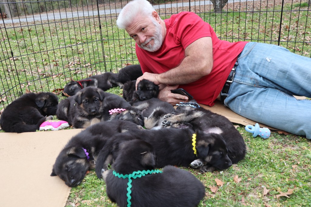Lots of people came by to see the puppies! Thank you to everyone who offered love and affection to all the puppies! The adult dogs in the pics are (grandma) Nellie and (brother) Winston. German Shepherds puppies in all stages of development need lots of socialization with many people to avoid problems in the future like aggression or shyness. You can be sure that Shepherd Sight puppies have been well socialized, but new owners must be sure to continue the socialization process with people and potential environmental stressors. Puppies are still available from this litter. Contact form at bottom of page.