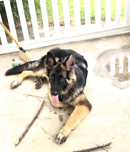 This nearly 6 month old Long-haired GSD puppy’s ears have been up and down. His owner tried the breathe right strips, but had to take them out because he had an insect bite that got sore and he kept scratching it and shaking his head. So, that day, his ears looked like this: