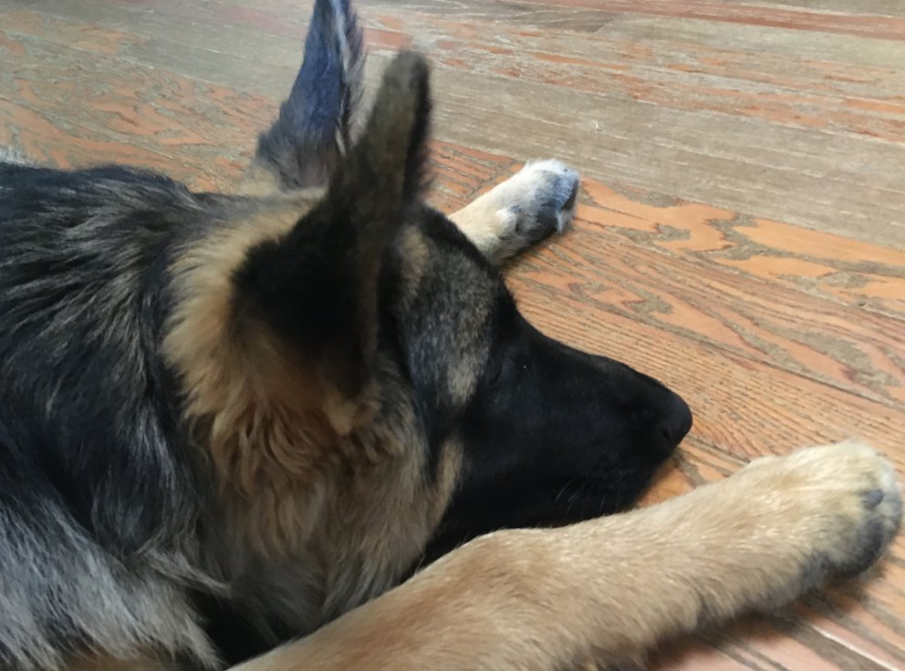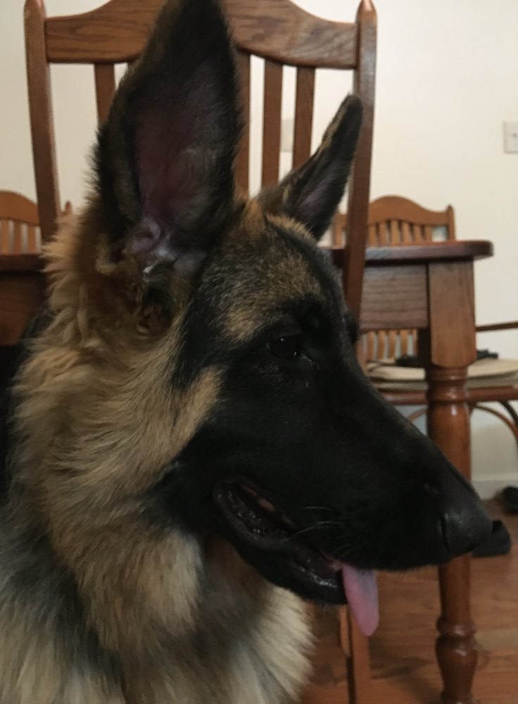 Connie’s ears gave us all fits. They were taped and taped again. They got better, she was teething, they came down, we tried the breathe right strips, and then tried it again, and finally that lazy ear came up! She is so pretty with her ears up! Thank you for sending the pics Peggy! Gosh I hope they are up for good!