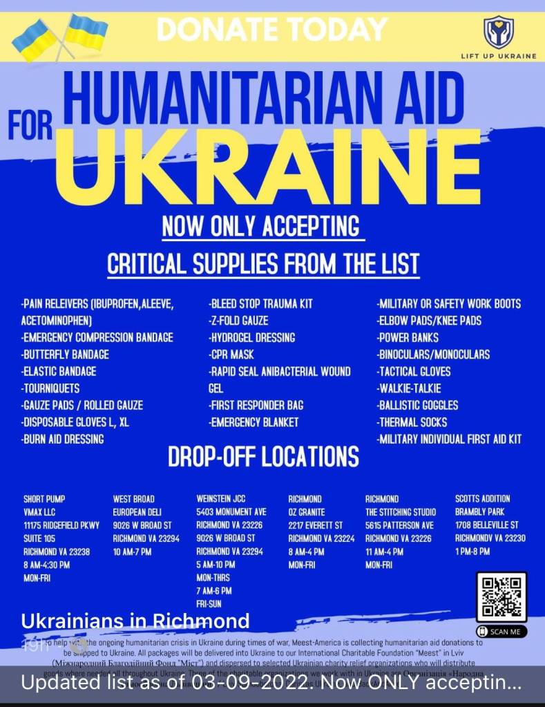 What in the world do dirty puppies have to do with Ukraine? PLEASE read to end to find out! About six weeks ago I decided to have my shower enlarged because it is too small to give a dog a good bath in it. So I called Aleks, who manages Oz Granite in the South End of Richmond. He came by to give me an estimate. Turns out his family is in Ukraine. So he’s gathering donations along with other people from Ukraine in the Richmond area. He sent me this flyer so that people can make donations more easily. The supplies will be taken to Poland where they will be used to help people coming from the front lines of the war. THIS IS LEGIT. THEY ARE NOT ASKING FOR MONEY. THEY NEED SPECIFIC SUPPLIES!