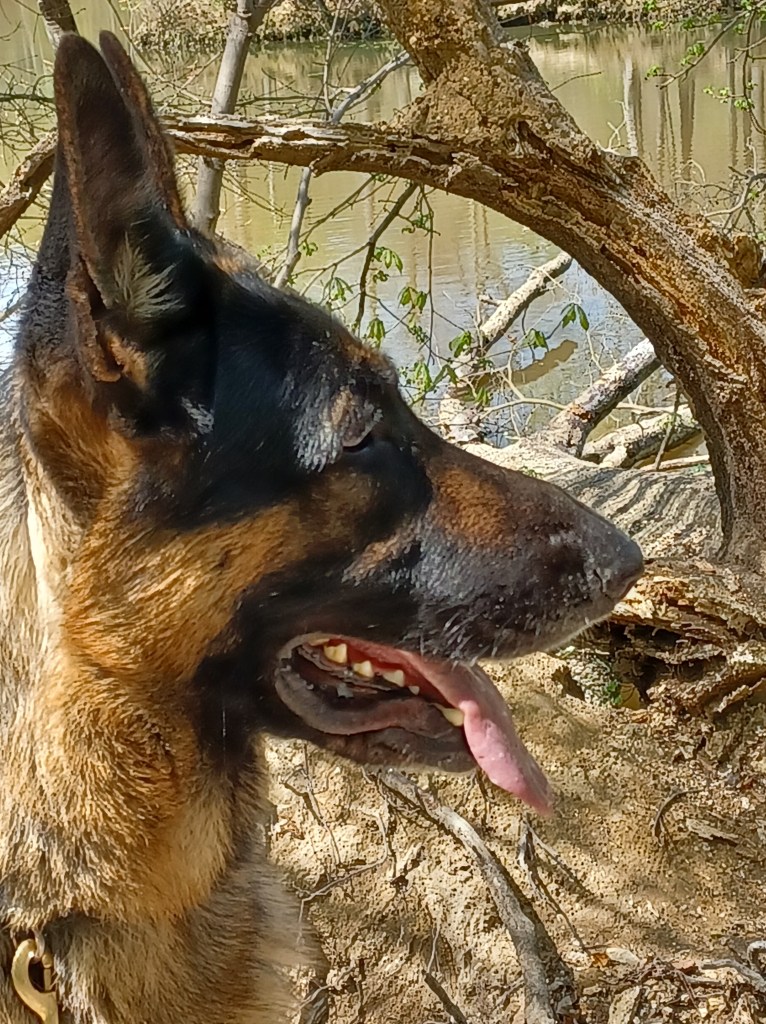 Winston went to Three Lakes Park today. There were a bunch of turtles basking in the sun on a log in the big lake. I tried to get a pic of Winston and turtles together, but they’re hard to see.