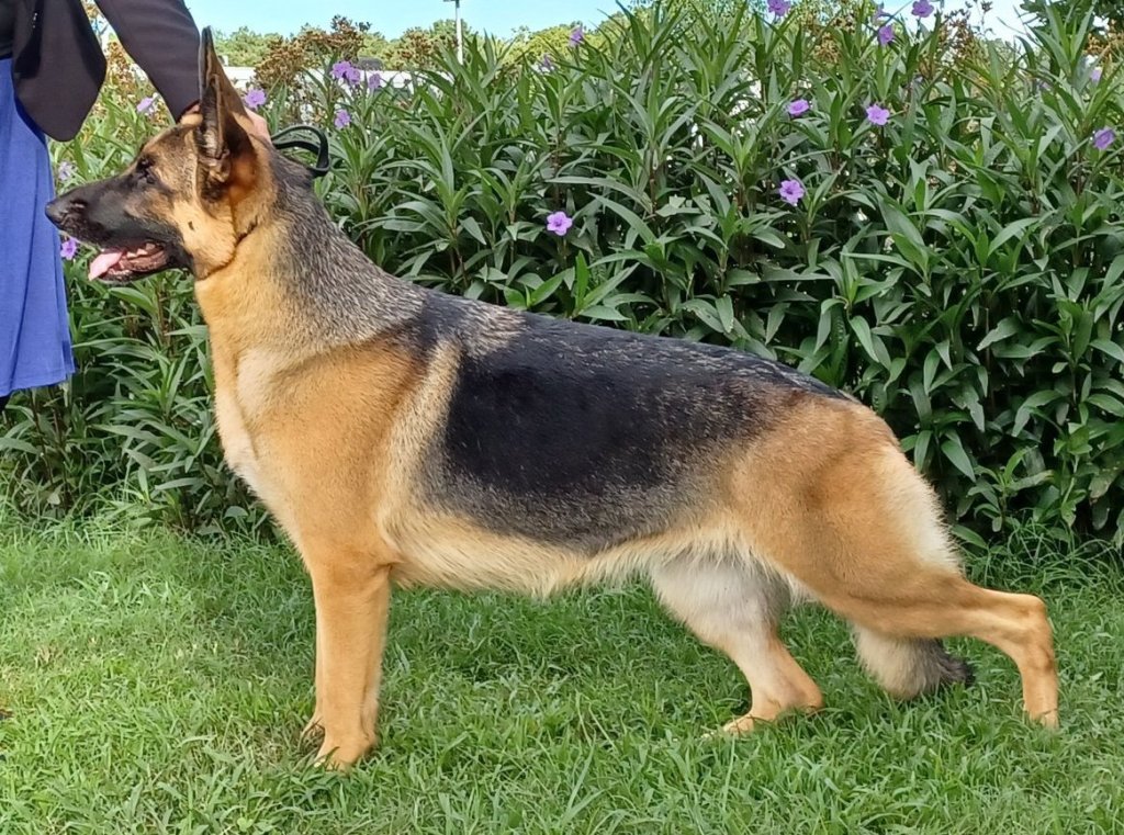 Both dogs are DM clear. See See was OFA certified at age 2 with GOOD hips and CLEAR elbows. Luc is prelimmed with GOOD hips and CLEAR elbows because he is less than 2 years. Both are on their way to championships.