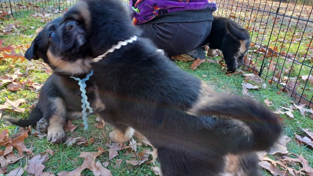 Visitors, outside play, and names Posted byshepsightFebruary 16, 2024February 16, 2024Posted inUncategorizedTags:5 week old GSD puppies, AKC GSD puppies for sale, black and tan GSD puppies for sale, early puppy socialization, GSD puppies for sale in Virginia Dr Frasier Crane Dr Frasier Crane and Roz Doyle Roz Foyle going after Dr. Niles Crane Dr Frasier Crane and Daphne Moon Daphne Moon Roz Doyle Roz and Daphne A very sleepy Martin Crane All five puppies getting petted together by Stan Share this: Click to share on Facebook (Opens in new window) Facebook Click to email a link to a friend (Opens in new window) Email Like Loading...