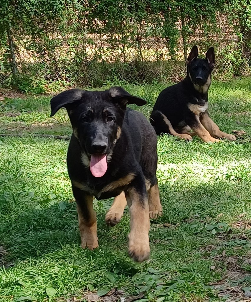 Great temperaments. Daphne adores children and everyone. Niles is going to be big and is spending all his energy growing. He loves people and gets along great with other dogs and does not seem to be an alpha type male. They have been to Home Depot and puppy classes and love to be petted by everyone. Leash trained. Crate trained. Early socialization and training done for you!