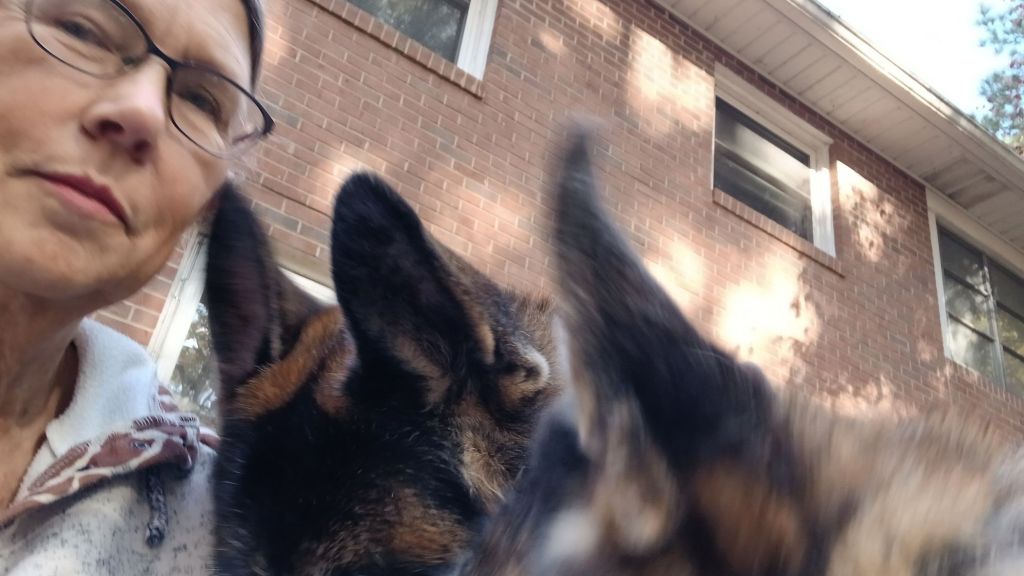 But they both still seem to enjoy life and love to express and receive affection. They totally love and understand each other, and me. Both are losing their hearing, and Jane’s is worse than Johnny’s. I’m sure the neighbors can hear me out in the yard calling to Jane and Johnny, and if they could see me I am waving my arms around too, to call them inside.