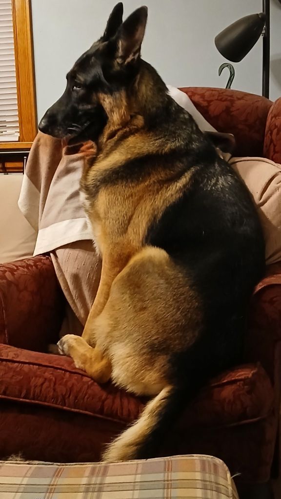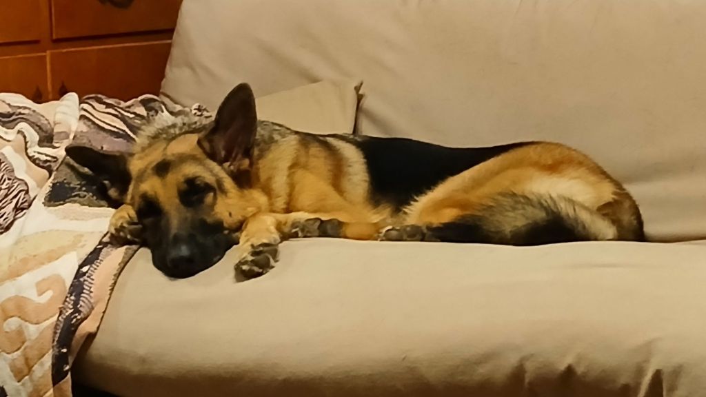 Daphne is the same age but has gotten her championship title already. I would have to check her hips and elbows too, once she turns 2 years old in January. She is due to come in season in April.