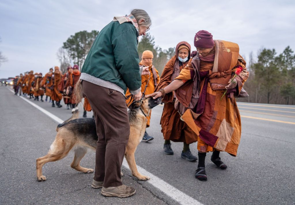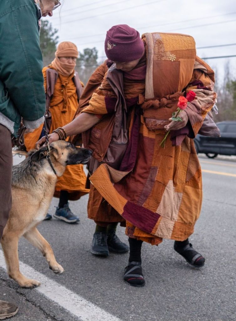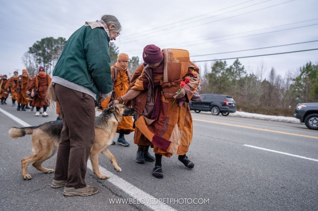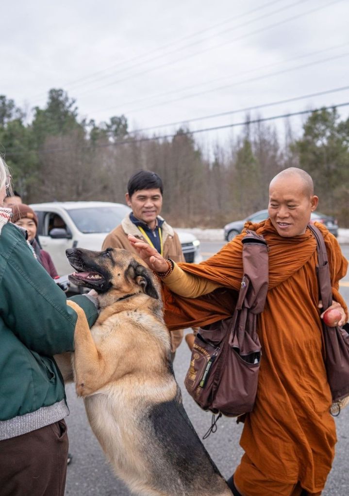 As the Buddhist Monks from Ft. Worth Texas came through Virginia, I was able to ask them to bless my SeeSee as they walked by. Nearly all of the Monks were able to bless her with gentle pets during the Walk for Peace towards Washington, D.C.