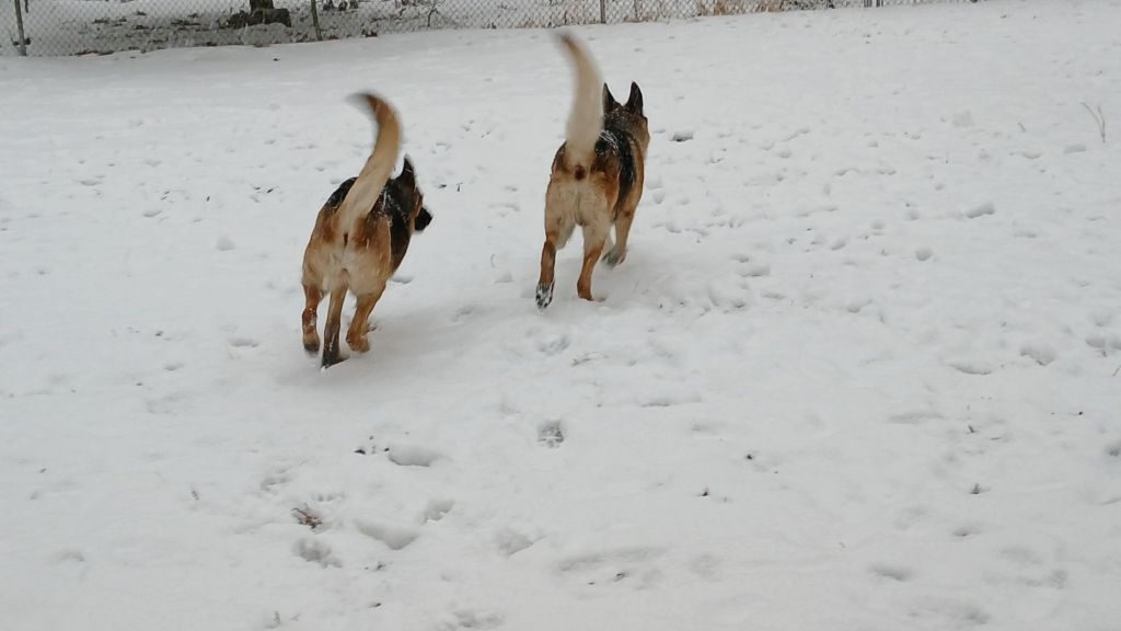 I just took a bunch of random pictures today. It was snowing again on top of all the ice that we had. At least they got some traction finally, while they were running in the snow.