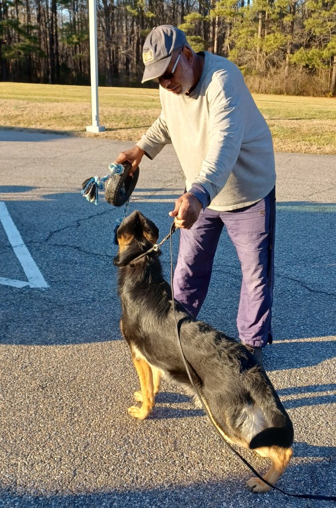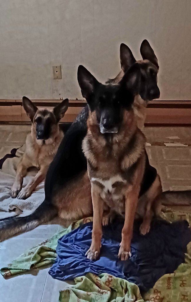 I met Josh and some other friends in Petersburg to practice conformation handling some dogs. Josh brought his new female puppy, who is now 6 months old, so I could check out her ears. She tore the tape off after 8 days, so he glued them instead of retaping them.