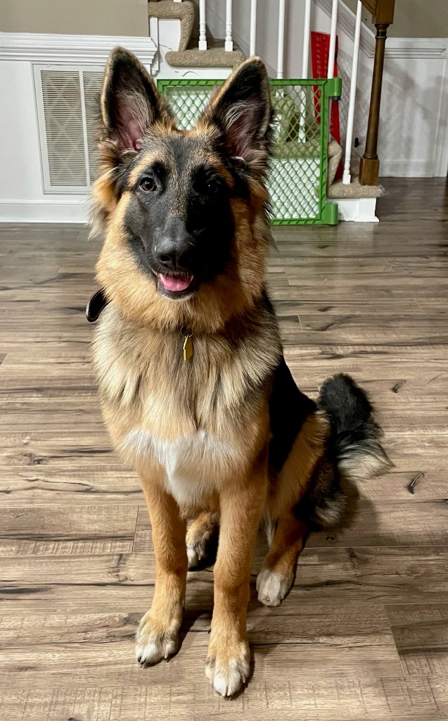 Thank you so much, Tiffany, for sending this great pic of Loosy! She looks so beautiful and well cared for. I love the way each puppy from this litter is unique yet resembles each parent or grandparent. In Loosy, I see her dad’s expression and her Grandma Nellie’s pretty long-haired soft looks. I’m also admiring her perfect ears that didn’t need any help (yay!) from her dad Cash. Her good conformation of her front, nice tight feet, and her pretty dark eyes came from momma Jane.