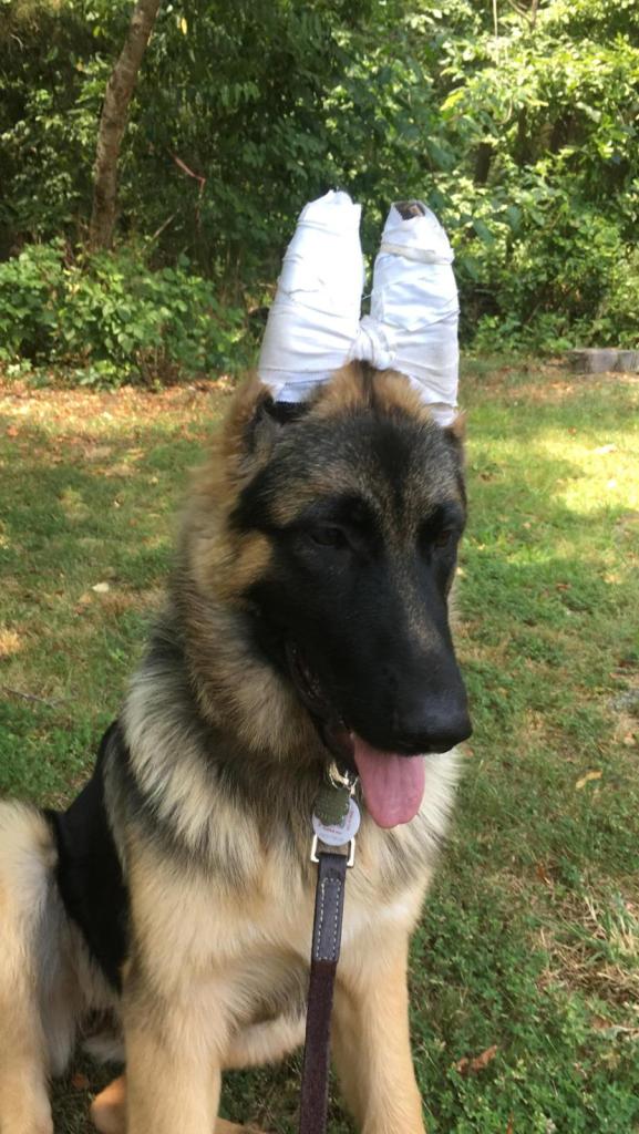 I will definitely post with results. Definite advantages with this method, as there isn’t really any likelihood of infection. Also, it is well tolerated. And if it doesn’t work, it’s pretty obvious if the ear is still flopping, or the ear is pulled to the side.