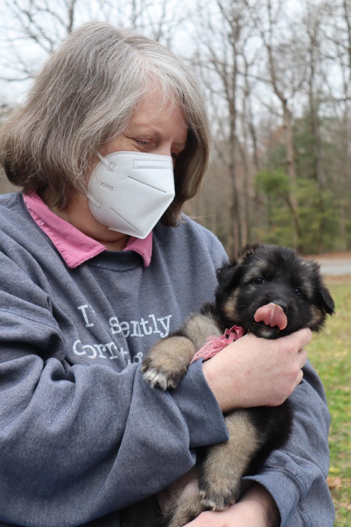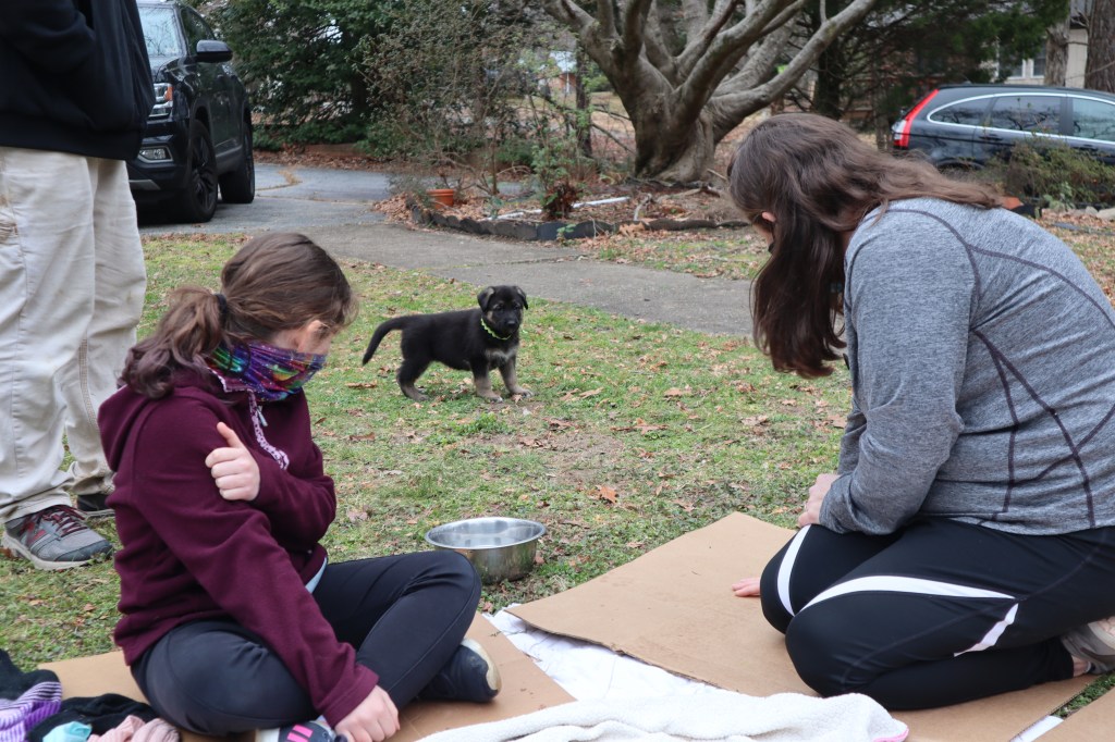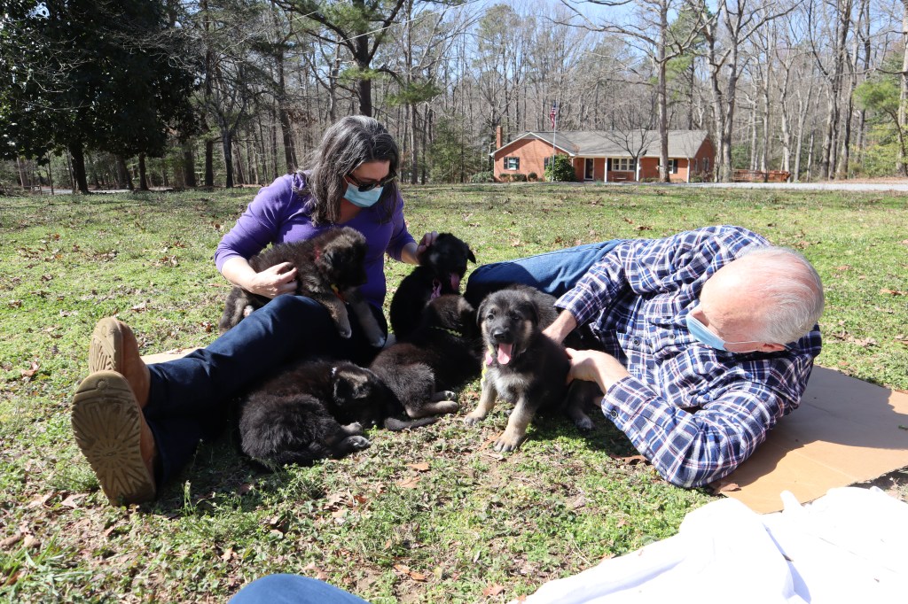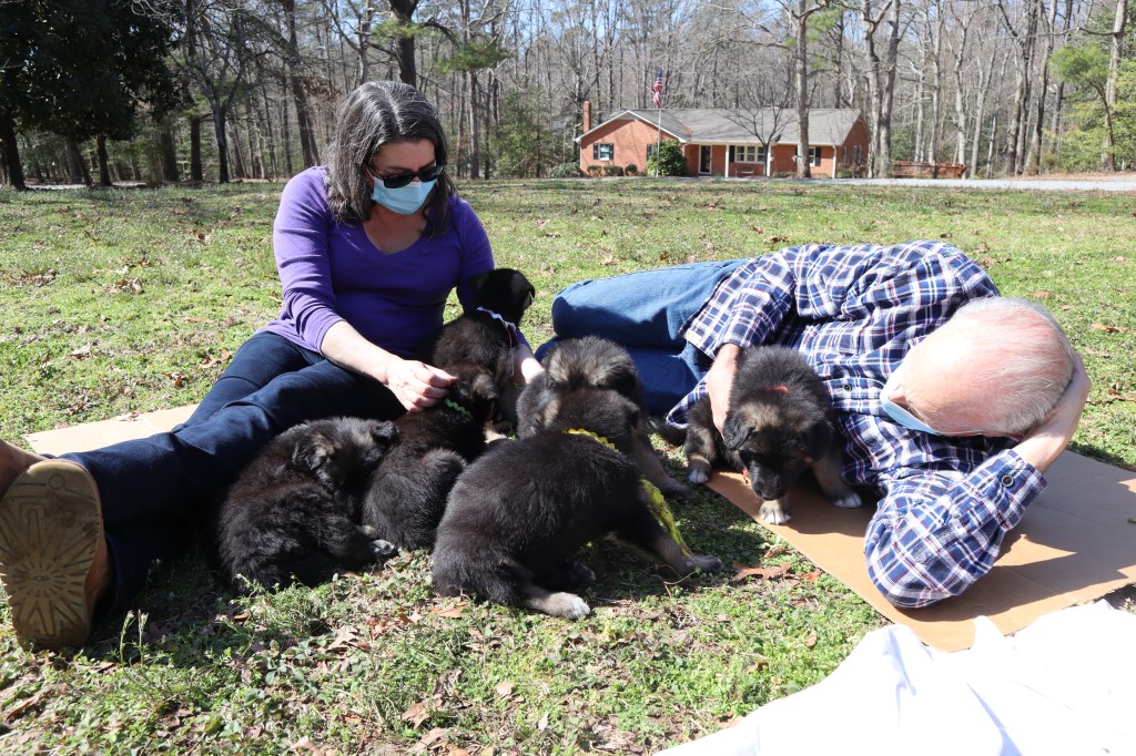 In the past two days, 6 puppies have gone to their new homes. Each family came more than once to see the litter, and together, we decided on the best puppy for the household. On Sunday, Pony, Loosy, and Mustang went to their forever homes.