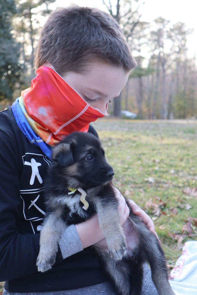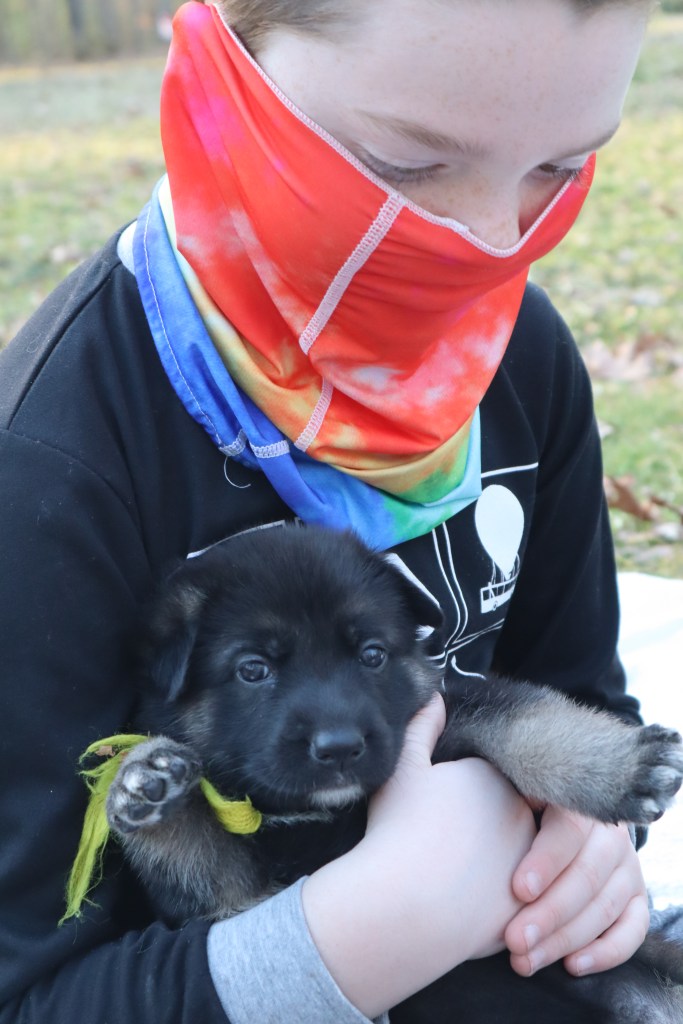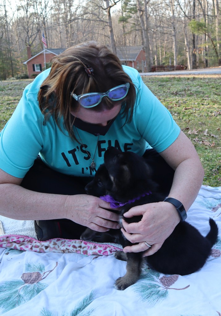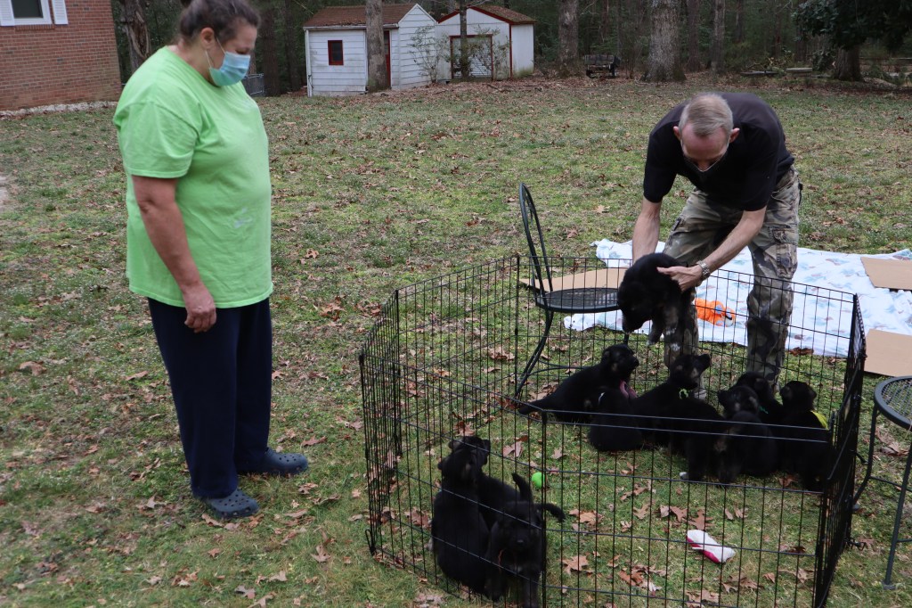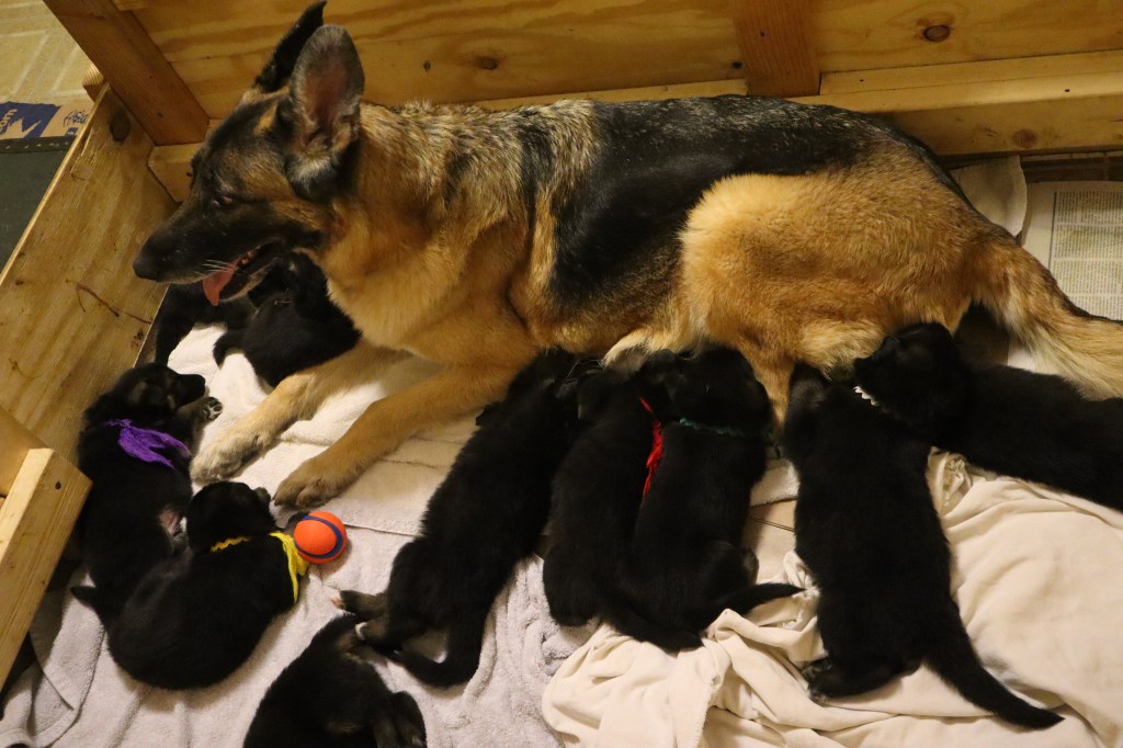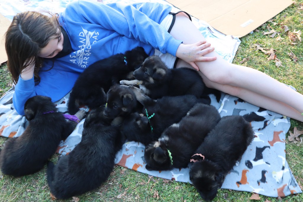 Lots of people came by to see the puppies! Thank you to everyone who offered love and affection to all the puppies! The adult dogs in the pics are (grandma) Nellie and (brother) Winston. German Shepherds puppies in all stages of development need lots of socialization with many people to avoid problems in the future like aggression or shyness. You can be sure that Shepherd Sight puppies have been well socialized, but new owners must be sure to continue the socialization process with people and potential environmental stressors. Puppies are still available from this litter. Contact form at bottom of page.