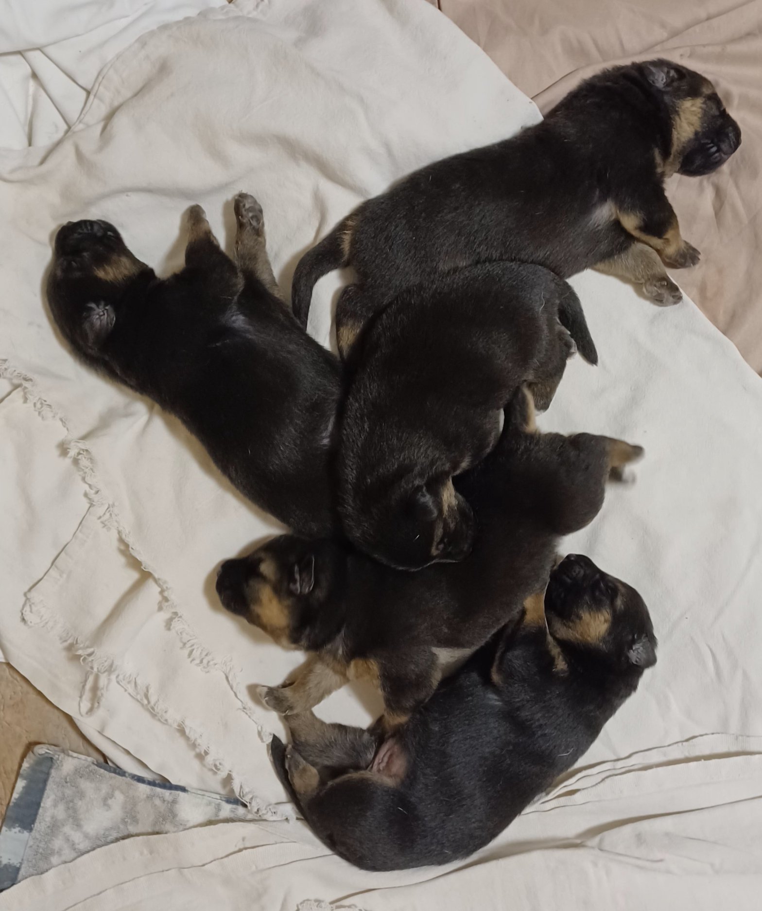 See See’s puppies are 10 days old today. Eyes aren’t open yet, but they will open any day now. If they are not eating, they are sleeping!